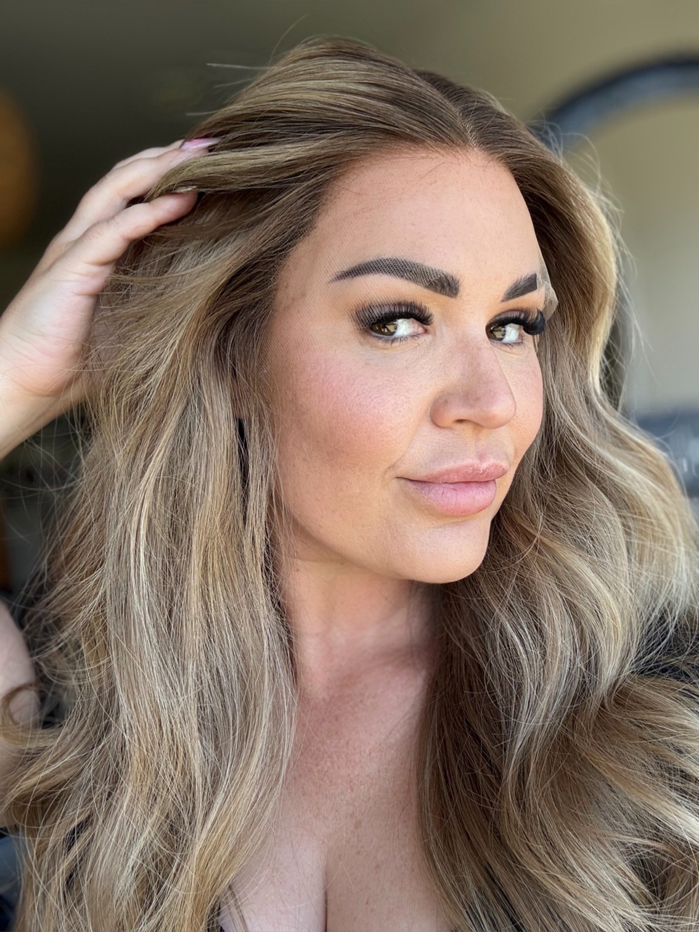 Dirty Blonde Money Piece Human Hair Wig - Sammie 20”